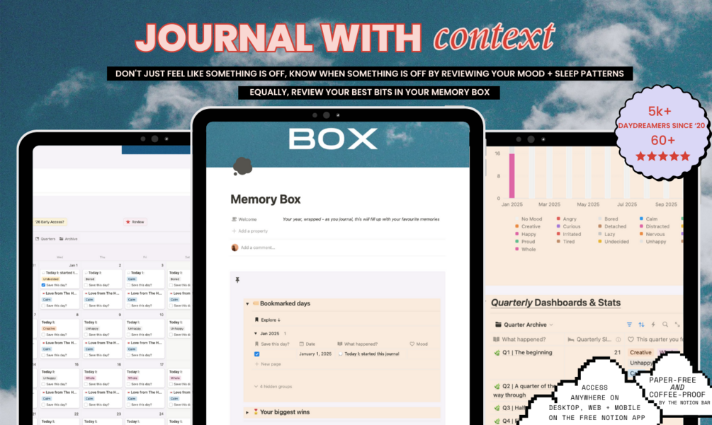 - Insightful weekly, monthly & quarterly automated mood summaries (Daydream and Power Journal only)