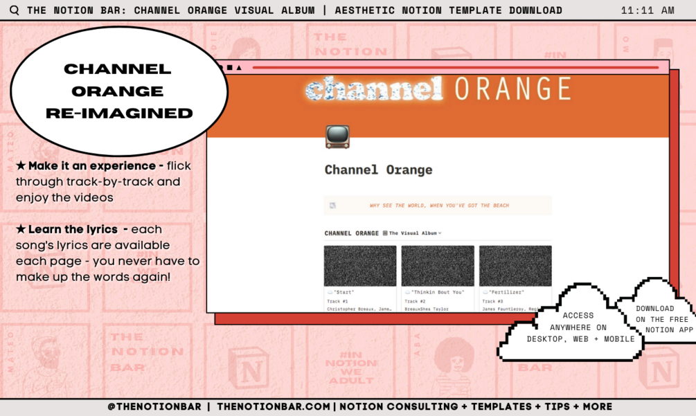Visual Album (Channel Orange) | Aesthetic Notion Template Download