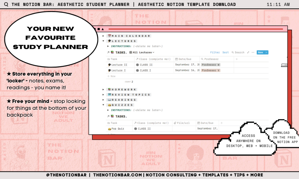 Take the stress out of your studies with this beautifully designed student Notion template + semester hub