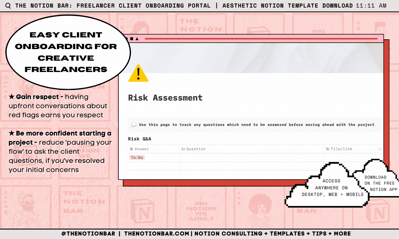 Freelancer Client Onboarding Portal | Aesthetic Notion Template Download