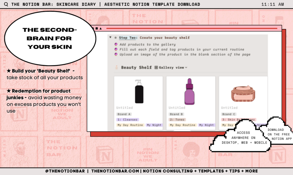 An aesthetic & practical Notion skincare diary - for tech & beauty lovers alike!
