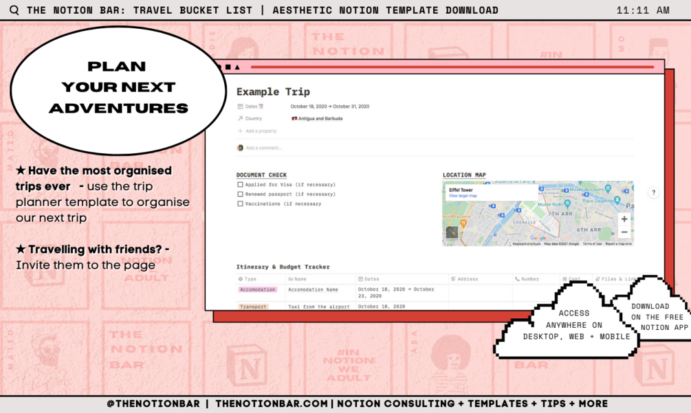 Travel Bucket List, Trip Planner & Scratch Map | Aesthetic Notion Template Download
